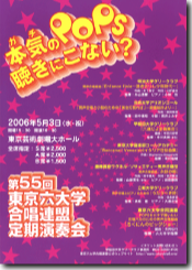 合同演奏 | POPSをガチで歌いたい合唱バカのための男声合唱組曲「ろくにんのビッグショー」 お話 SHAKE 【作詞】森 浩美 【作曲】小森田実 お話 涙そうそう 【作詞】森山良子 【作曲】Begin お話 WE WILL ROCK YOU 【作詞・作曲】MAY BRIAN HAROLD お話 瞳をとじて 【作詞・作曲】平井 堅 お話 渚にまつわるエトセトラ 【作詞】井上陽水 【作曲】奥田民生 お話 サライ 【作詞】谷村新司 【作曲】弾 厚作 【編曲】吉岡弘行 【指揮】六大学学生指揮者 【ピアノ】田中理史 【MC】高瀬耕造 |