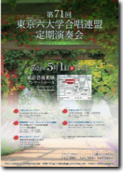 立教大学グリークラブ | 「National Anthem à la carte」 Japan(君が代) Peru「Himno Nacional del Peru」 Germany「Deutschlandlied」 France「La Marseillaise」 Australia「Advence Australia Fair」 Gahna「God Bless Our Homeland Ghana」 America「The Star-Spangled Banner」 【編曲】田中達也 【指揮】田中豊輝 【ピアノ】内木優子 アンコール 夏のまぶた 【作詩】森山 恵 【作曲】田中達也 |