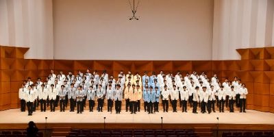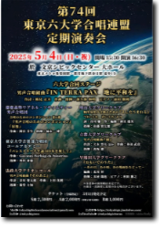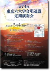 六大学合同ステージ | 男声合唱組曲 「IN TERRA PAX 地に平和を」 知った OH MY SOLDIER 花をさがす少女 ほうけた母の子守歌 IN TERRA PAX 地に平和を 作詞:鶴見 正夫 作曲:荻久保 和明 指揮:荻久保 和明 ピアノ:前田 勝則 |