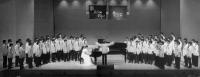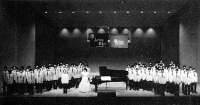 合同ステージ | 男声合唱とピアノのための「三つの時刻」 【作詩】丸山 薫 【作曲】三善 晃 【指揮】田中信昭 【ピアノ】中島 香 二群の男声合唱とピアノのための「路標のうた」 【作詩】木島 始 【作曲】三善 晃 【指揮】田中信昭 【ピアノ】中島 香 |