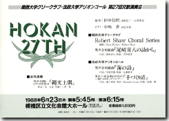 法政大学アリオンコール | 男声六重唱のための「手づくり諺」-四つのポップソング- Your eyes Three bonzes Cinderella's misfortune A farewell gift 【作詩】瀧口修造 【訳詩】Kenneth Lyons 【作曲】武満 徹 【指揮】田中信昭 |