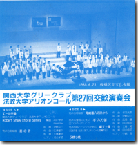 関西大学グリークラブ | Robert Shaw Choral Series Stodolé Pumpa Die Lorelei Marianina Home, Sweet Home Vive L'Amour 【編曲】Alice Parker/Robert Shaw 【指揮】津野松三 |