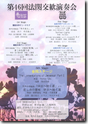 合同ステージ | The Lamentations of Jeremiah PartⅠ 【作曲】Thomas Tallis 【指揮】西岡茂樹 男声合唱組曲「明日へ続く道」より 悲しみの意味 明日へ続く道 【作詩】星野富弘 【作曲】千原英喜 【指揮】蓮沼喜文 【ピアノ】中川万里花 |