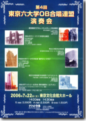 | 【合同】 | 「エール交歓」 「慶應義塾塾歌」 「St. paul's will shine tonight」 「明治大学校歌」 「早稲田大学校歌」 「東京大學運動會歌」 「法政大学校歌」 【指揮】吉川貴洋・髙坂徹・渡辺利雅・工藤悠一郎・酒井雅弘・茂手木裕二 |