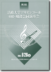 | 法政大学アリオンコール単独ステージ | 「水上」「早春」「風」 【作詩】北原白秋 【作曲】柴田南雄 【作揮】田中信昭 |