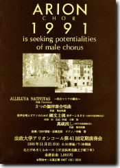 | 「3つの無伴奏合唱曲」 | 群芳譜(1949) 【原詩】マラルメ 【訳詩】鈴木信太郎 しょうがない(1951) 【作詩】シュヌヴィエール 【訳詩】柴田南雄 秋(1960) 【原詩】フリードリヒ=ニーチェ 【訳詩】原田義人 【作曲】柴田南雄 【指揮】谷澤友則 |