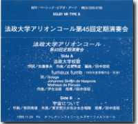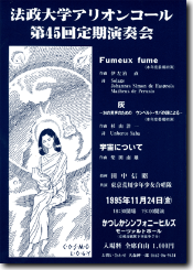| 「fumeux fume」-1995年度委嘱初演- | 【詩】Solage, Johannes Siomn de Hasprois, Matheus de perusio 【作曲】伊左治直 【指揮】田中信昭 |