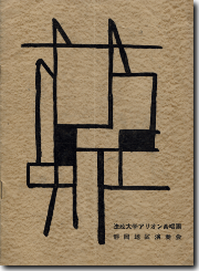 | Ⅰ 静岡工業ハーモニカバンド | 「椿姫」第一幕の前奏曲/ヴェルディ ドナウ河のさざなみ/イヴアノ ヴィッチ 妖精の踊り/ベルリオーズ 行進曲「旧友」/タイケ カルメン シルバー/イヴアノ ヴィッチ 【指揮】大石喜一郎 |